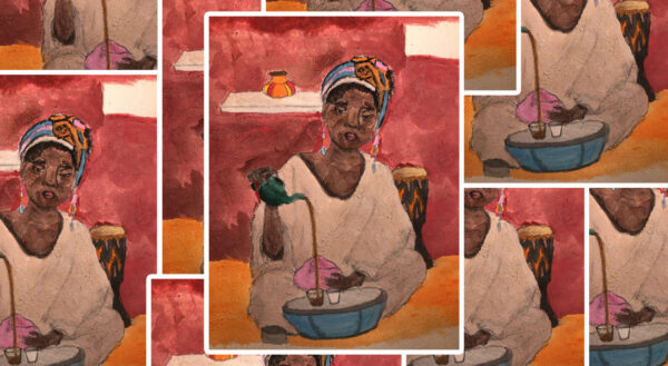 Fanny’s favourite painting is “Ataaya” because of its message, shapes, lines and colours. Illustrated and painted in 2020, this watercolour-based artwork by Constantino depicts the harsh social reality encountered in the poor Senegalese social classes, where Black women are mistreated as a result of gender and race inequalities.
