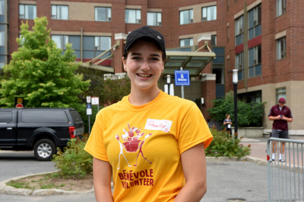 Prescillia Desjardins is a fourth-year literature and modern languages student who volunteered the morning of Sept. 1 outside of 90U. Desjardins worked with other smiling volunteers as they welcomed new students getting ready for their new homes.