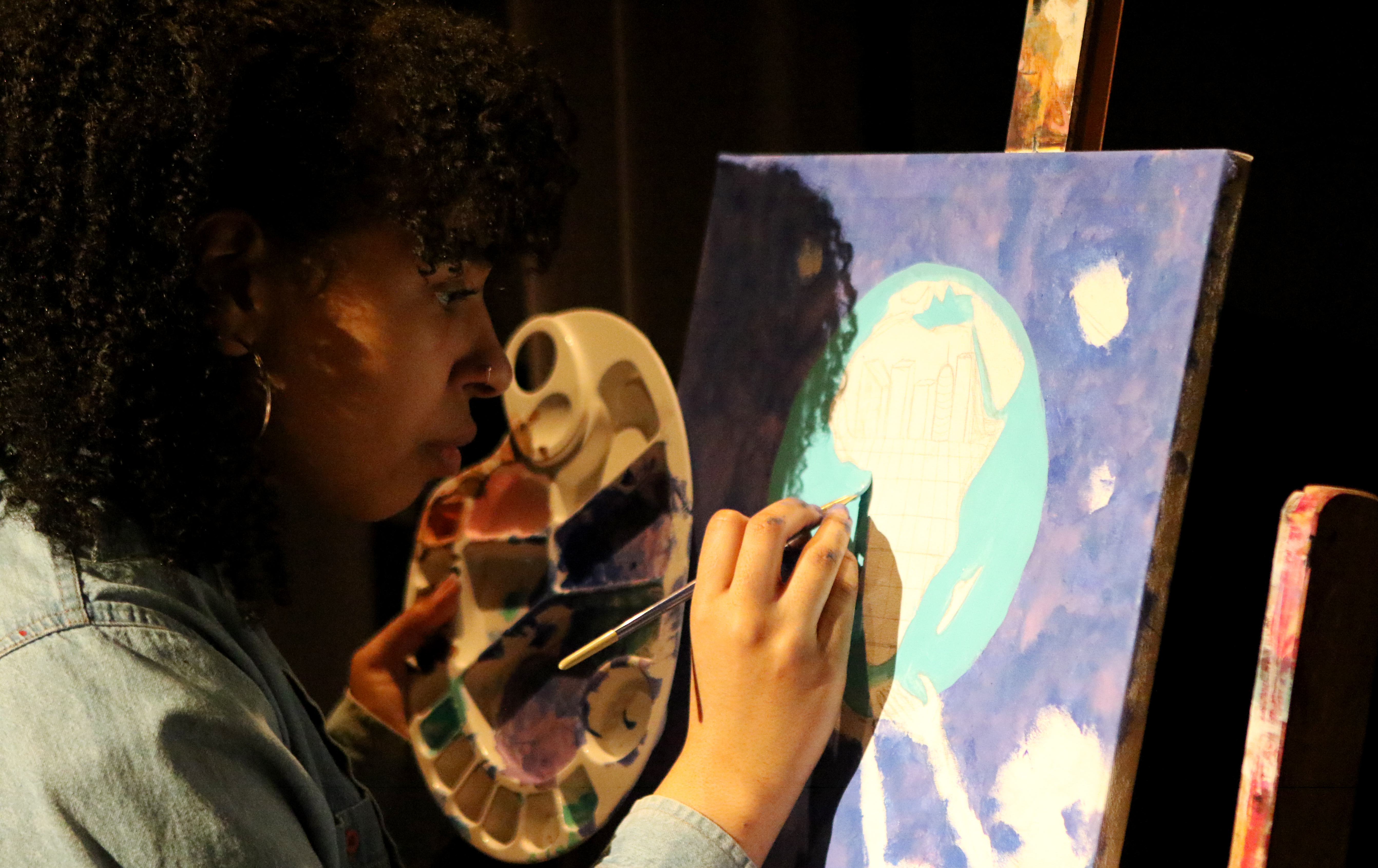 Young artists like Mélodie Higgs, a first-year theatre student; As performances played on the main stage, she and two others painted individual pieces expressing the night’s theme on the edge of the auditorium.