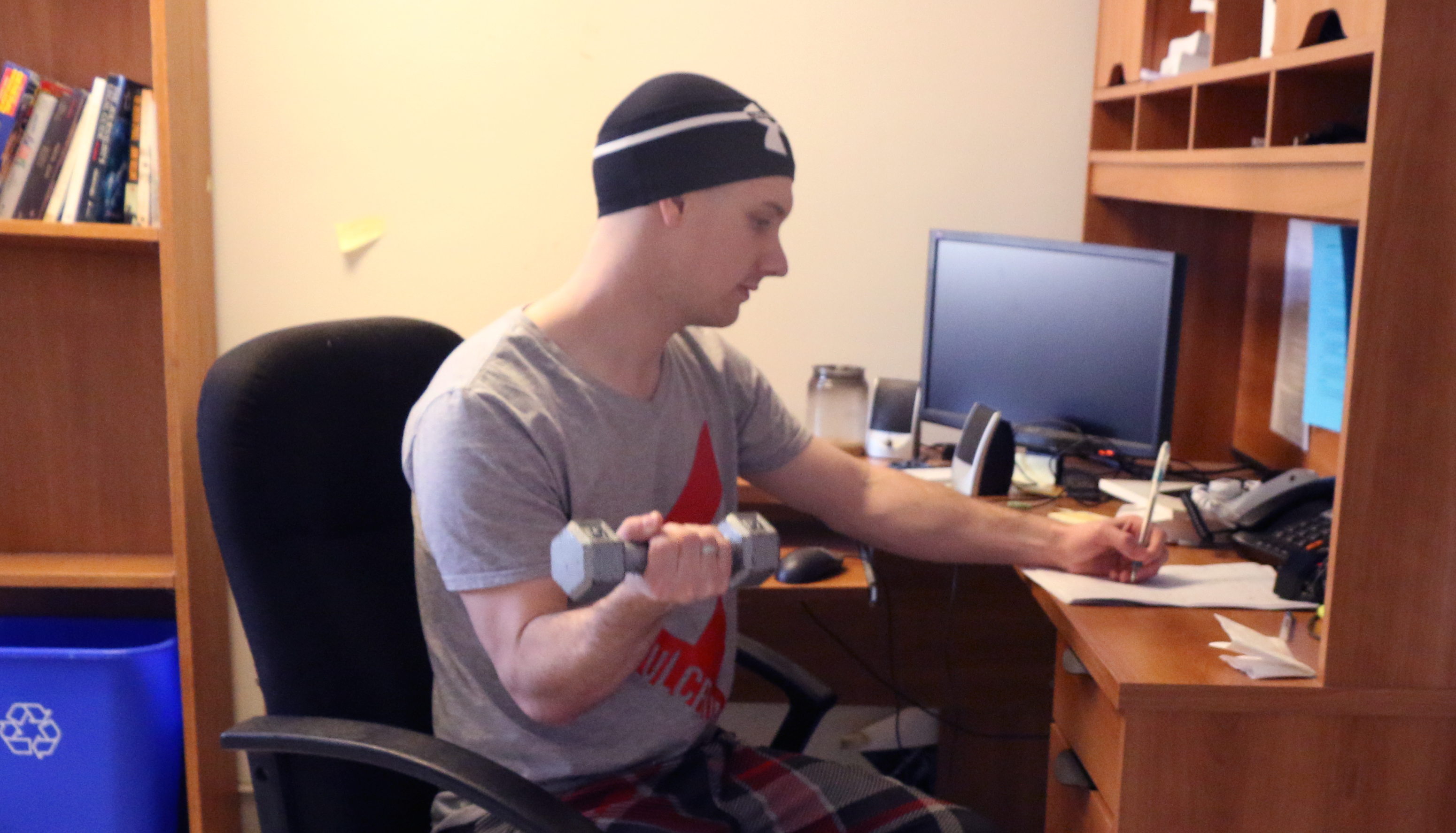 So, to help balance out this equation, here are a few simple workout routines that can be pulled off when you’re trying to study for finals in your oh-so cramped, but hopefully quiet, study space.