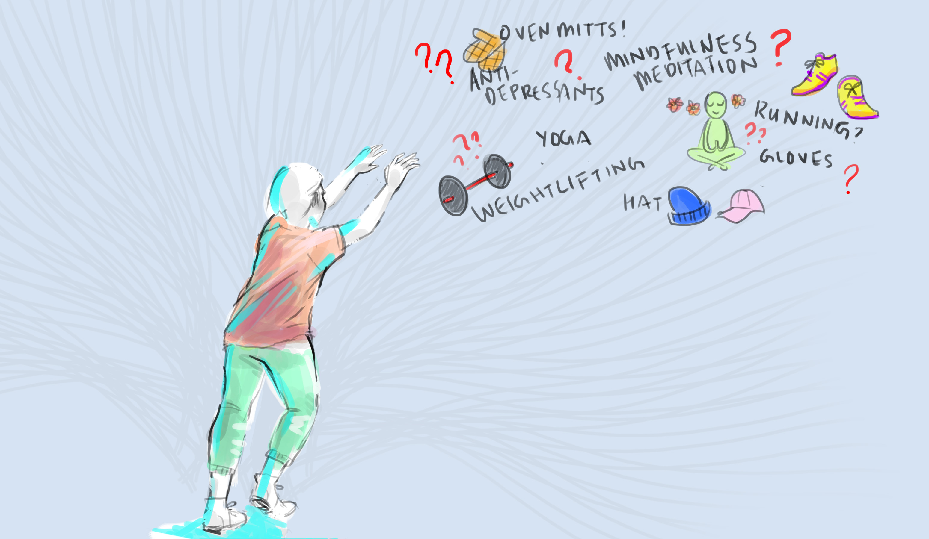 Different doctors have different approaches, and because I am desperate, I try them. I have tried mindfulness meditation, running, kickboxing, weightlifting, and yes, yoga. I have worn hats, headbands, gloves, oven mitts, anything to cover my hair, skin, or my worst enemy, my own hands. Band-Aids are one of my biggest expenses along with antibiotic ointment to control infections.