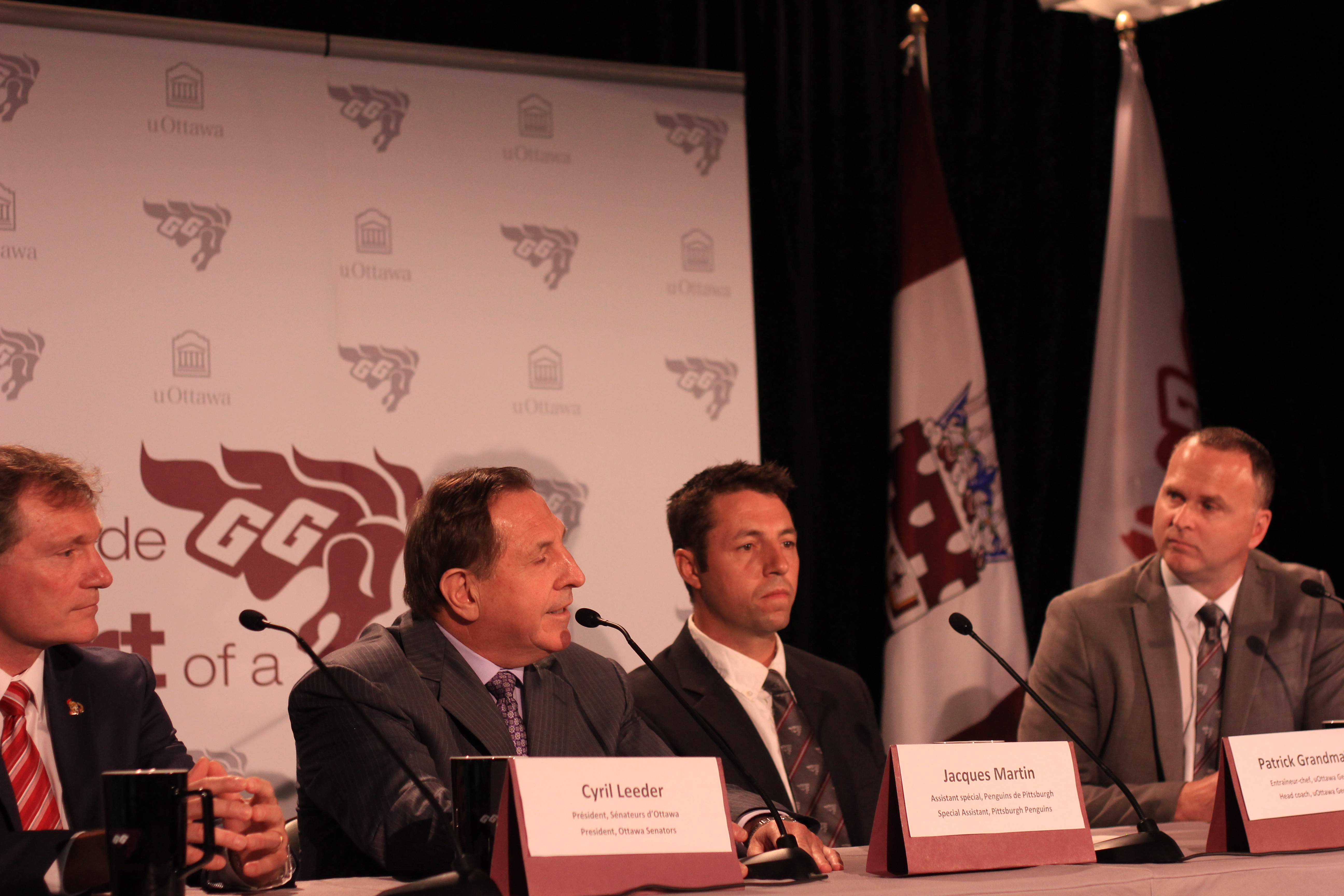 Cyril Leeder, President of the Ottawa Senators, was also at the press conference and will be a part of a committee advising the new team. They were also joined by former Senators coach, Jacques Martin, who is currently a special assistant to the head coach of the Pittsburgh Penguins. He served on the committee tasked with choosing a new head coach, and will be a consultant and advisor to Grandmaître over the next year.