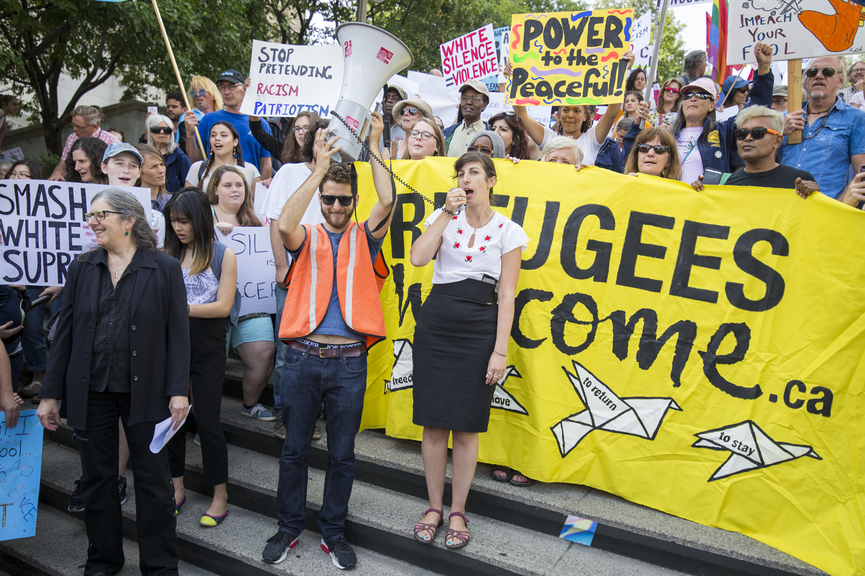 On Wednesday, Aug. 23, members of the community gathered on the steps of the U.S. Embassy on Sussex Drive to protest against the recent violence in Charlottesville, Virginia and American President Donald Trump’s response to these events.