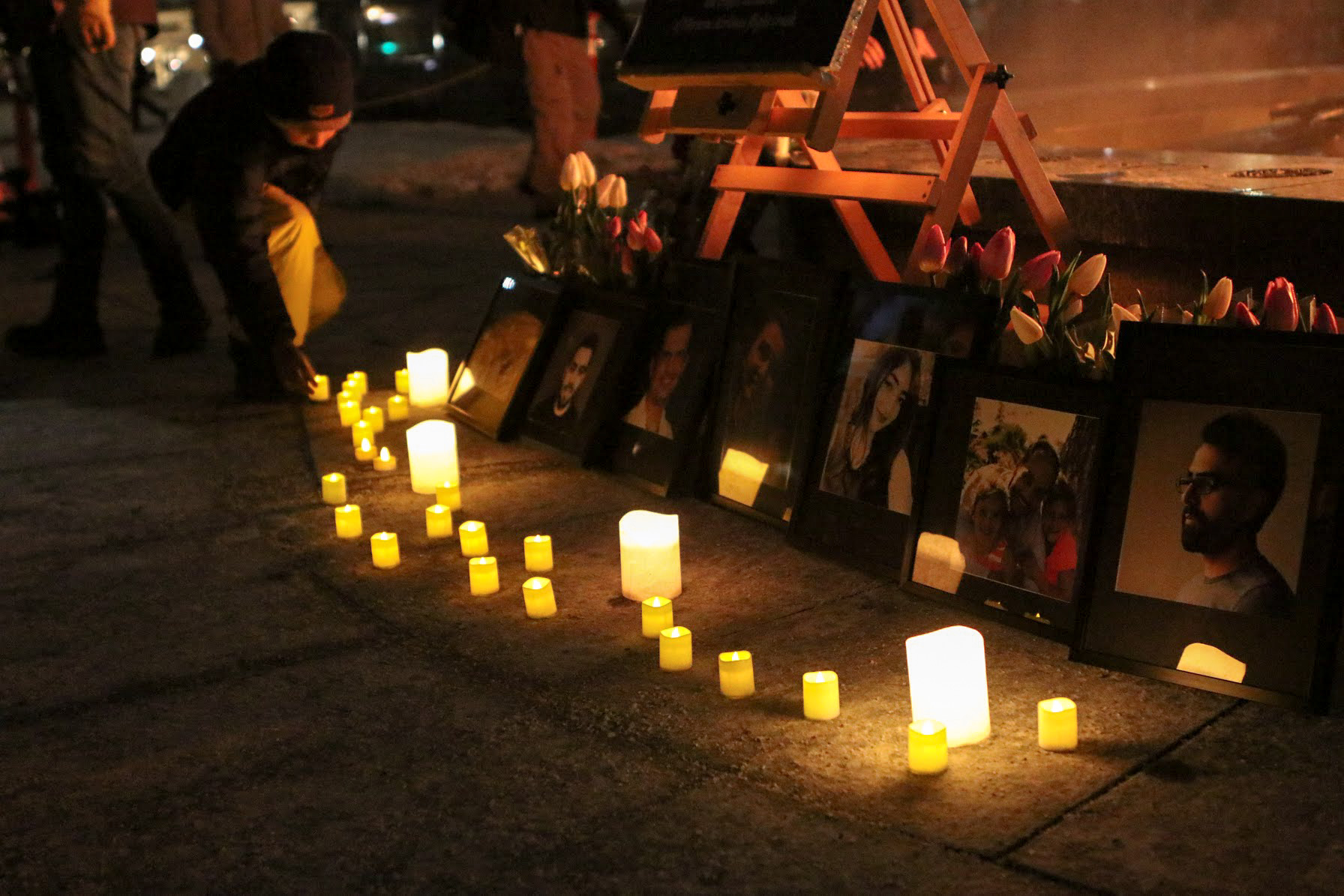 Friends, family members, loved ones and every-day citizens laid down flowers and candles at a memorial at the Centennial Flame.