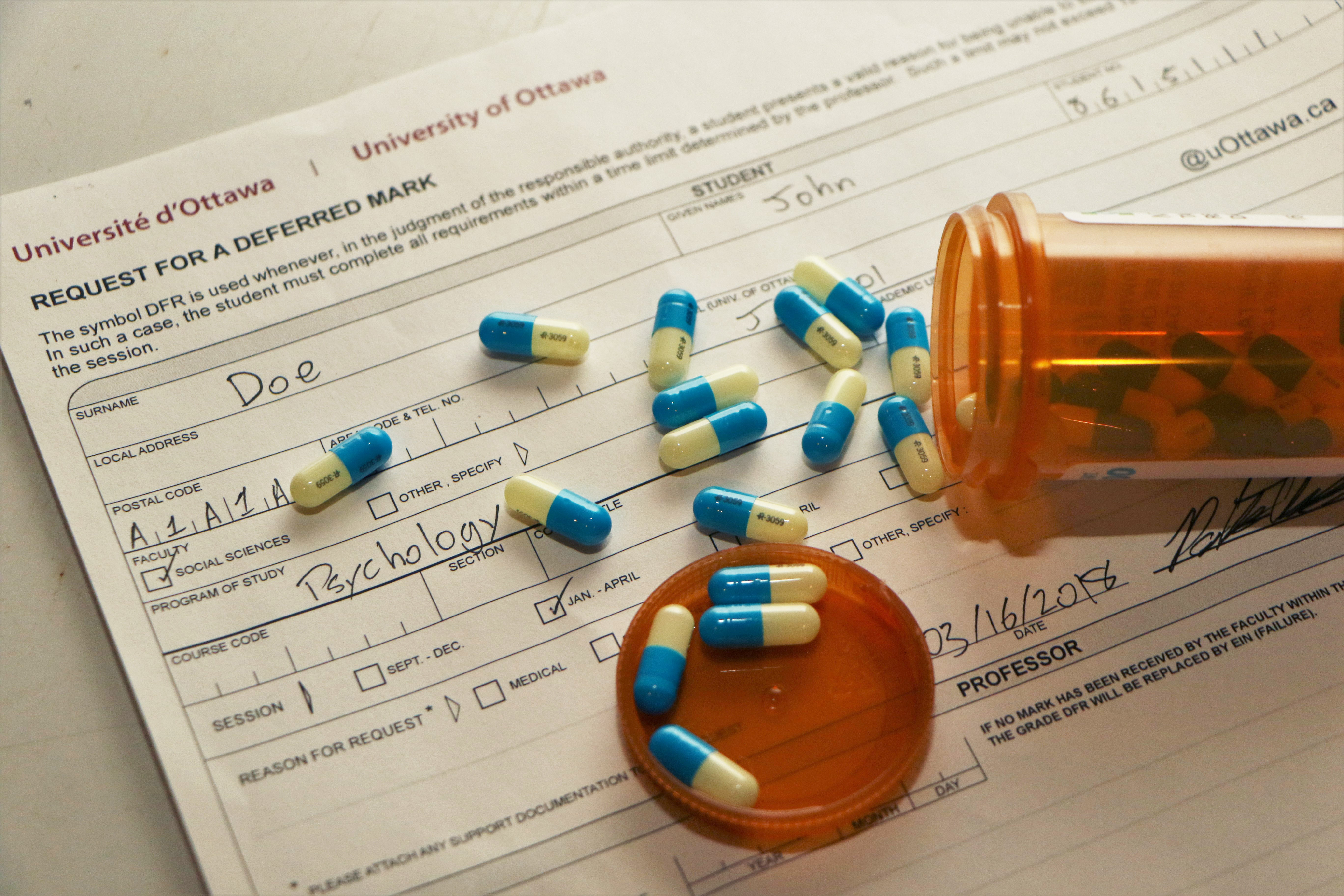 Thankfully things worked out for me in the best possible way. I got most of my exams deferred, a great family doctor, referrals to counselling services to tide me over until I could get an appointment for counselling through University of Ottawa Health Services (which takes months, by the way), and prescriptions for antidepressants, which frankly, felt like a rite of passage.