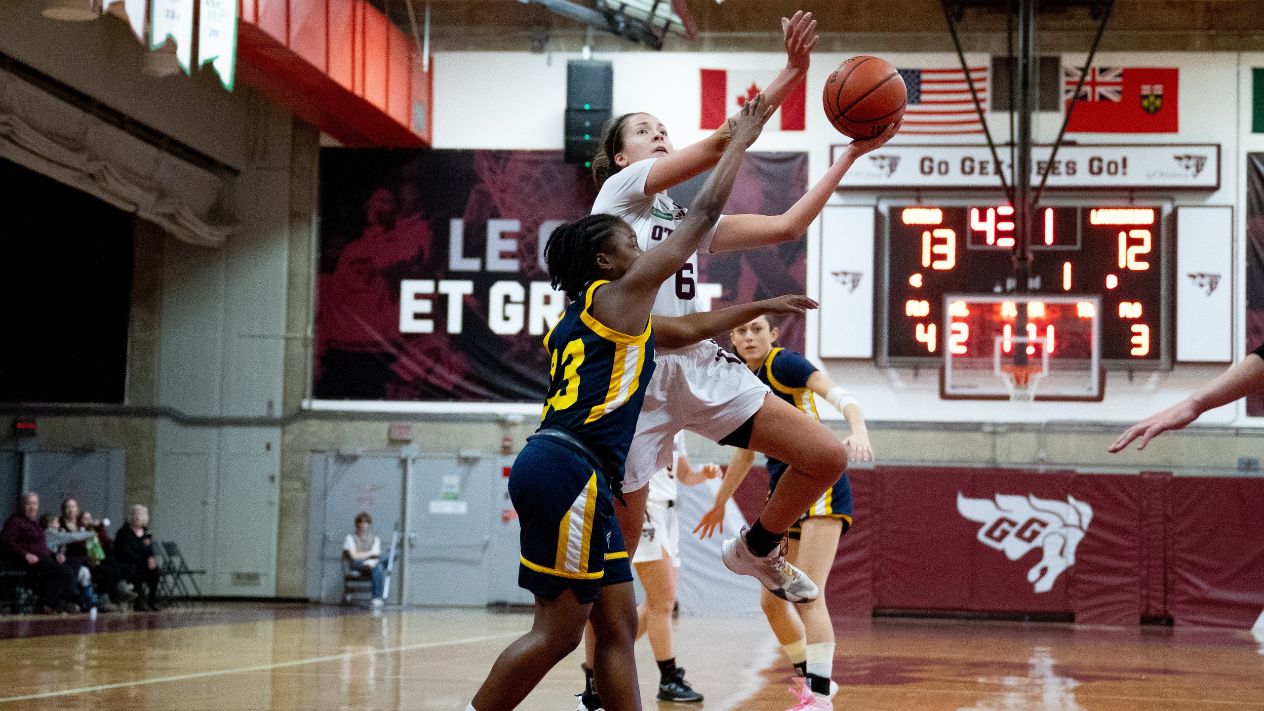 “We allowed Emilie Lafond to get the ball, we allowed the wing to get the ball, which was part of our scouting report, and we didn’t want the wings to be getting the ball. So we adjusted our effort that way.” The Gees were also able to shut the paint down, as the Voyageurs struggled to score from close as well.