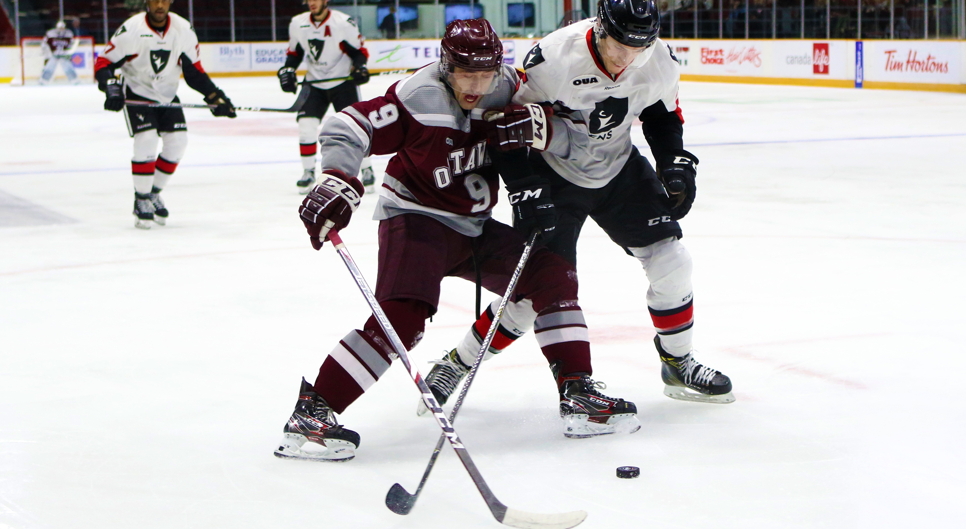 The Gee-Gees move on to the OUA Eastern Conference finals where they will face the Concordia Stingers. The Gees have a 1-2 record against the Stingers, winning 5-3 early in the season before falling 8-7 and more recently 5-4 to the team from Montreal.