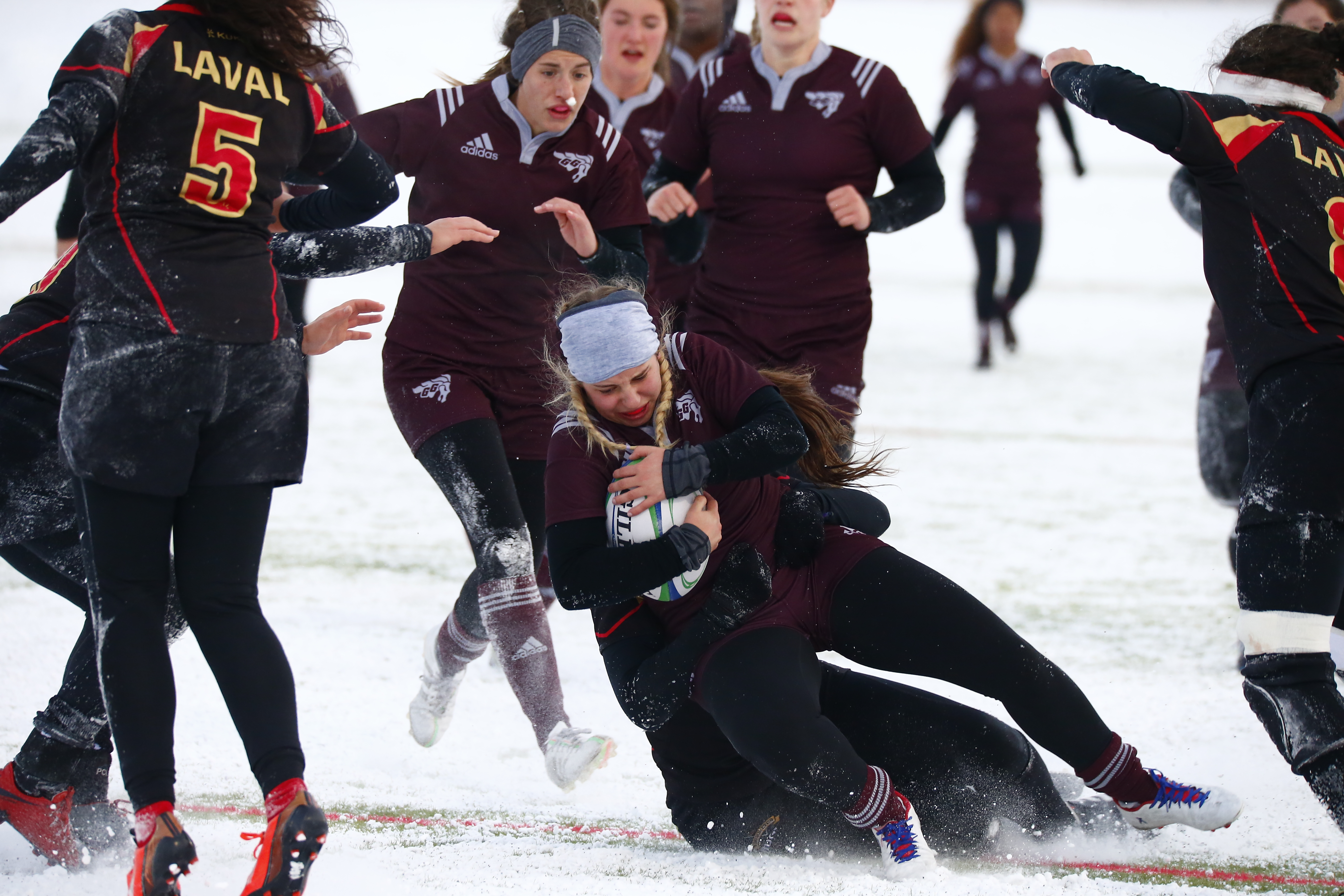 The Gee-Gees got the ball first, and Samantha Alli got the Gees their first big run as they tried to press early. After an early offside by Laval, the Gees placed a good kick to give them field possession on the throw, but the Rouge et Or stole the ball and looked to run. After a Gee-Gees infraction, Laval put the first points on the board less than five minutes in, going up to 3-0.