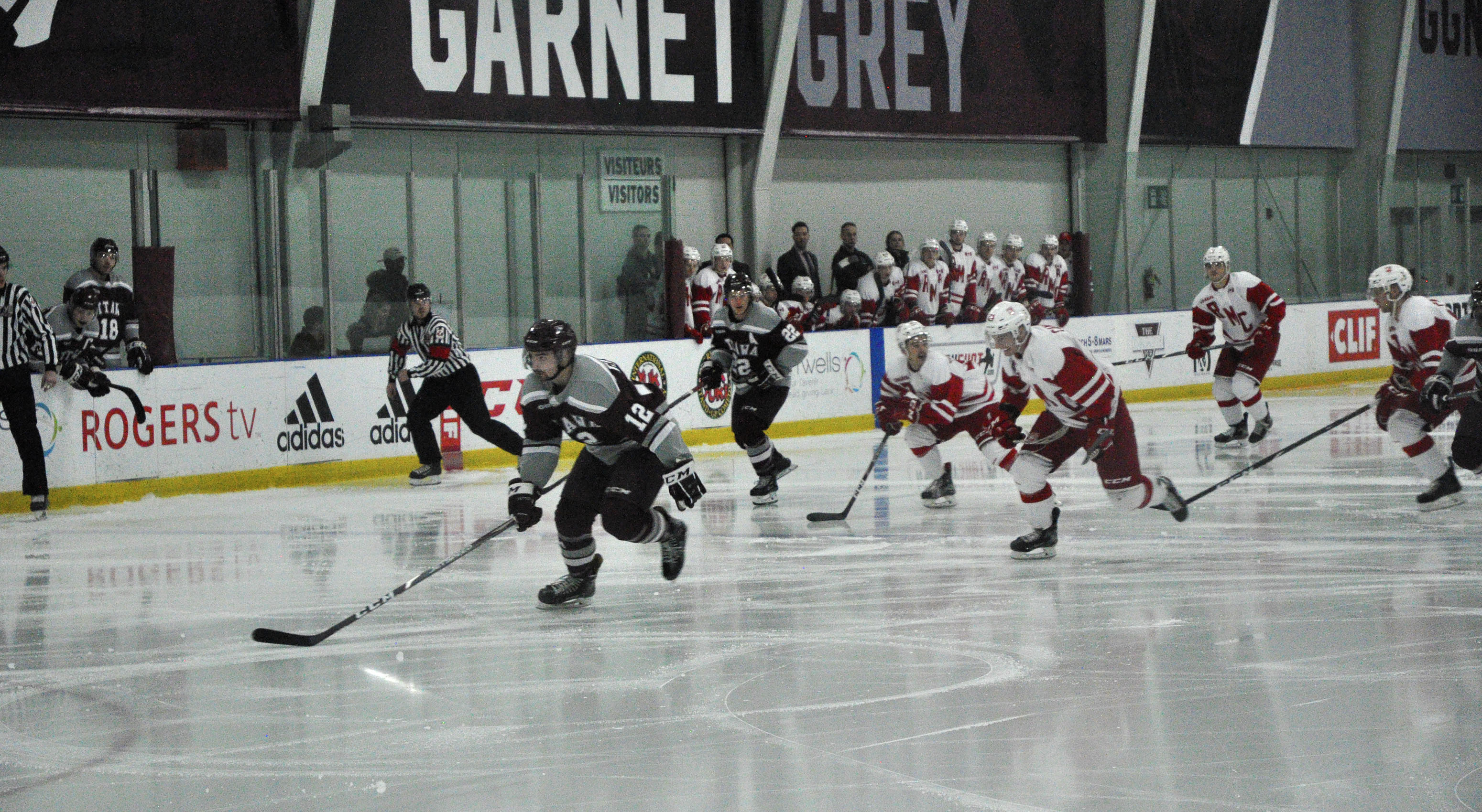 The Gee-Gees were menacing on their powerplay but unable to capitalize on any of their chances, with May once again stopping everything. RMC fed off their goalie’s heroics and Paquette managed to breakaway with two minutes left and beat Hunt with a shot bar down to tie the game at three.
