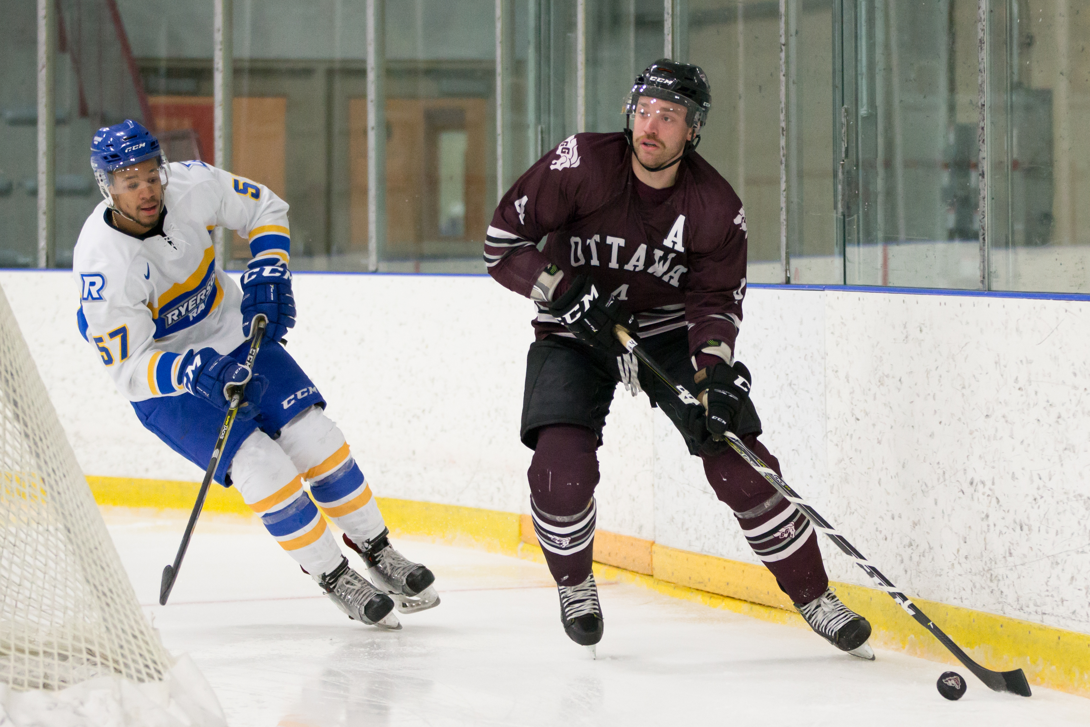 Gee-Gees defencemen Jacob Sweeney and Médric Mercier were both honoured by the East division of the Ontario University Athletics (OUA) Men’s Hockey last week, with Sweeney named to the second All-Star team, while Mercier to the All-Rookie team at the conclusion of the 2017-18 season.